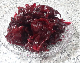 煮一锅热水将洛神花分次川烫约20~30秒(杀青去涩)后马上捞起沥干
