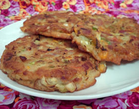 - 6. 将面煳煎成金黄色,在翻另一面煎至金黄色即可。