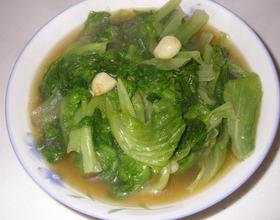 蒜瓣炒香放入生菜,生菜变软,倒入调好的汁即可