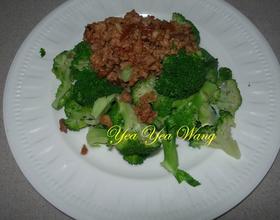 洗净放入滚水煮至熟起锅再放入"香炒猪皮肉末)