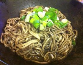 煮熟的面沥干拌入麻酱, 搅匀洒上葱花即可