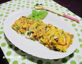 - 8. 料多味美起司海鲜蔬菜煎饼就完成啰。
