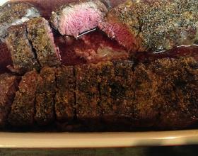 - 10. 切开来吃,是1块1块香嫩嫩的牛排!牛排不需多加浓郁酱料,少许海盐,黑胡椒粉,芫荽粉,罗勒叶在牛排上就很美味!