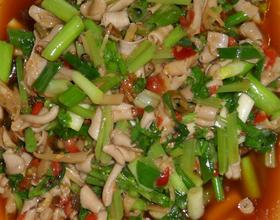 最后加入葱和芹菜,撒入味精和鸡精翻炒数下装盘即可。