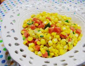 - 6. 简单又美味的甜玉米炒热狗丁就完成啰~~