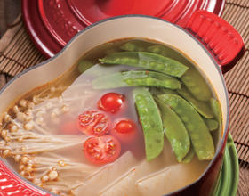 樱桃茄(迷你番茄)性寒,味甘酸,含维他命A、B、C、矿物质、钾、磷、钙等及茄红素。茄红素具独特抗氧能力,有效抗衰老和增加抵抗力。金菇质地清脆可口,久煮不烂。含丰富矿物质、维他命及纤维,多吃可提高免疫力和通便。胺基酸成分更有效增进思考力。