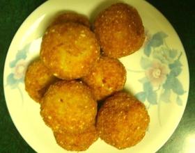 - 5. 炒好猪绞肉和马铃薯泥拌在一起.挖成球状