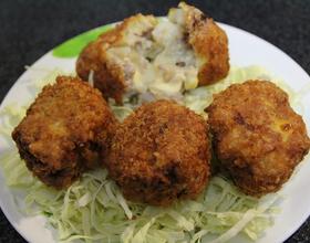 - 4. 起锅~包入起司的有爆浆效果会烫嘴喔~铺上高丽菜丝沾番茄酱或是莎莎酱都很对味