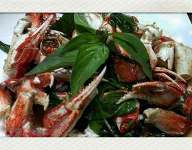 炒香后下沙蟹脚及高汤滚约2-3分钟。