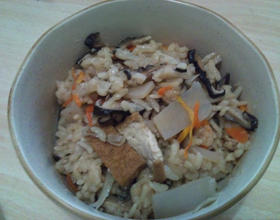五目炊饭一般来说调味都较为清淡,方便配其他的菜一起吃。但是如果你嫌麻烦懒得炒菜来配,调味的部分就可以加入一些鲣鱼露增加咸香味。这样可以不用加鲣鱼粉,并且要记得酱油量就要减少一点。五目炊饭的蔬菜多样,直接用海苔包一包就是方便营养的饭团啰!