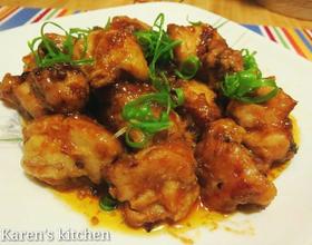 将鸡肉和腌料拌匀腌至一个小时。油锅放鸡件煎,煎完一面才翻另外一面煎,煎至六成熟后捞起备用。