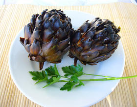 用调羹勺泡好的橄榄油勺在洋蓟的叶间