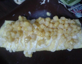 如果不太会卷的人~其实可以用铲子+汤匙(之类的)当做辅助工具..不一定要跟我一样用筷子喔~ 可是半熟搅拌食用筷子比较方便啦~(个人感觉)