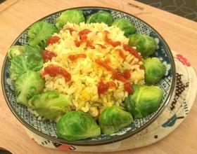 锅里倒入少许油,下洋葱炒香后放入红萝卜、毛豆、玉米粒炒软,在放入白饭续炒2分钟,再将蛋液均匀的淋在饭上,炒至蛋汁全部包覆在饭粒上并且收干。洒上少许的盐调味即可呈盘。
