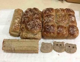 - 5. 涂上蛋汁,洒少许白芝麻(如喜欢的话)。放入预热至 180C (356F) 的焗炉中,焗约 35分钟,直至转金黄色为止。拿面包出焗炉前约 5分钟,扫上糖水,令面包看起来更光亮好看(或可省去此步)。放在铁架上放凉,即成。