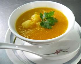 -南瓜还有胡萝卜也用适量的水煮熟放凉,用果汁机打成浓汤再倒回锅子里