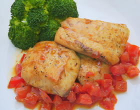 - 1. 鲷鱼片洗净擦干后顺纹切成大块,再用<腌鱼酱料>腌渍30分钟以上、牛番茄切成小丁备用。