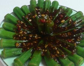 秋葵去蒂头洗净,起一锅水川烫熟,捞起冰镇两分钟沥干。
