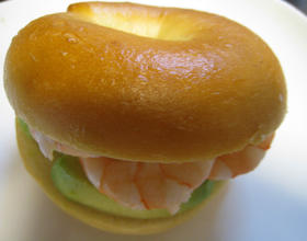 贝果外层表皮稍硬 内部组织紧密扎实 富有嚼劲 易产生饱足感 当早餐或是点心皆宜 贝果口味可单纯也可复杂 简单涂上果酱或是调味料 或搭配水果 蔬菜 海鲜 肉品 可做出不同变化