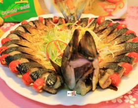 - 3. 鱼取出,竹籤撑开,挂勾挂嘴上。