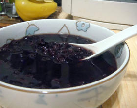 再移至大汤锅和紫米一起煮到红豆汤浓稠,加糖调味即可~