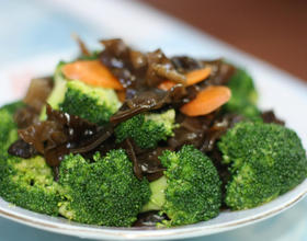 - 6. 步骤6: 将炒好的黑木耳红萝卜蚝油汁淋在花椰菜上就可。