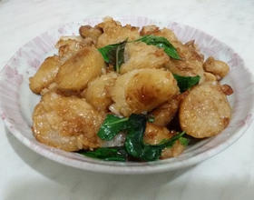 糯米肠、蒜头切片,九层塔摘叶子洗净。