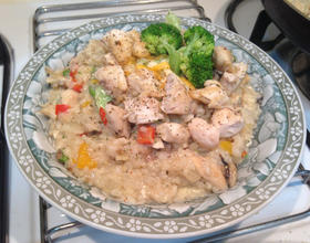 喜欢奶味重一点的 ((鲜奶油+起司))可以在加多一* ((自行斟酌))不喜欢奶油味的 可以省略((奶油+鲜奶油+起司粉+起司))就变成 意式燻鸡蘑菇炖饭噜 ))比较清淡 ~~ 也是很好吃的~~~~配料都可以自己调整 ((海鲜、素食)) 依个人喜好 ~^^