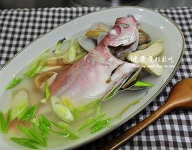 - 1. 清水或高汤煮滚后,转中火,放入姜片,香菇,蛤蛎,鲜鱼,煮滚后,鱼身翻面,煮约1分钟,即可熄火