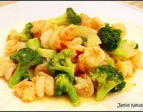 - 5. 加入花椰菜再一同翻炒15秒左右,即可盛盘。