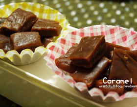 - 7. 准备一个容器,抹点奶油或铺上烘焙纸,把糖浆倒进容器放凉再移进冷藏约 1~2 小时后(註三),取出切块后,就能发挥创意包装了。