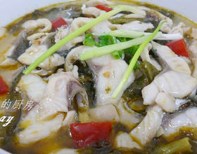- 10. 倒入开水,煮滚熬出胶质蛋白,锅子斜放,把一边的浮沫撇出,放入野山椒,煮5分钟左右,捞出鱼骨鱼头大片酸菜,留鱼汤。