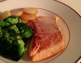 将鲑鱼、马铃薯、西兰花都放到盘子上摆好,就大功告成啦!