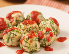 - 8. 鸡肉丸子做好后可以直接吃!不过用一些酱汁来调味后放入丸子炒炒,味道才会更好呦~比如可以用洋葱炒熟番茄沙司后,放入丸子裹上酱汁后盛盘,就是酸甜口味的鸡肉小丸子;也可以把日式方便咖喱卤加少许水煮沸腾且粘稠,倒入丸子小煮一会儿,便成咖喱鸡肉小丸子;而且,鸡肉小丸子一次可以多烤一些,然后放入冰箱冷冻,吃的时候与各种酱汁随心组合,方便又美味~~~