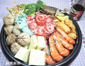 - 4. 底铺满高丽菜,上面放满喜欢的料,当季高丽菜和洋葱加上寿喜烧酱,煮出来都是蔬菜的甘甜,围炉来一锅,满足笑呵呵~