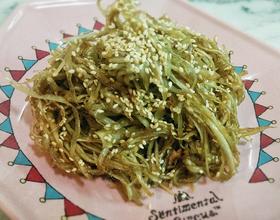 锅子加入香油热锅,然后加入牛蒡丝拌炒