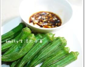 完成了!沾着酱汁吃的秋葵......喔依细!