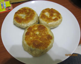- 6. 步骤6在平底锅上倒少许油开中火烧热,再转至小火将生葱烧包放入煎至两面金黄微焦即可起锅。