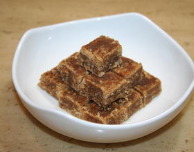 - 6. 将生姜糖浆快速倒入已备好的模型盘中,利用扁平木匙,稍稍整型,待稍微冷却,即可用刀子切割成小块(等硬时才切,不易切且易碎裂),待完全冷却,密封保存。