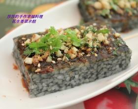 4) 最后组合: 米糕淋上沾酱, 在洒上花生香菜, 及三岛甘松