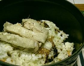 酱腌好的鸡腿铺在最上层、腌鸡腿的酱汁一起倒进去