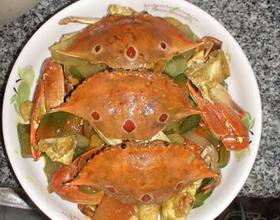 下螃蟹、咖喱粉、红糖、盐、料酒、水稍微煮一下。