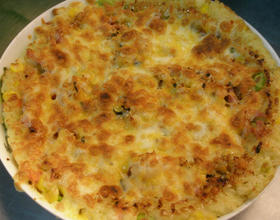 - 8. 将起司烤到溶化~披萨表面上色就完成培根虾仁米披萨啰!!