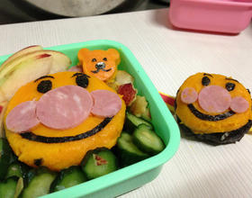 再用海苔修剪出眼睛..加上配菜..就大功告成噜.
