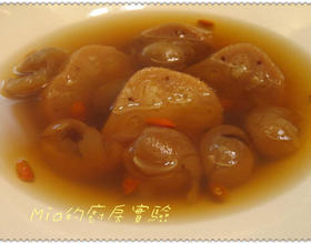 - 9. 盛些桂圆枸杞甜汤,再放入冰糖莲藕片,完成。