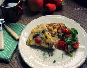 - 1. 简单料理的原则,注意不要容易出水的蔬菜就好,但是不要选青椒,我觉得她太抢戏了...玉米粒、洋葱丁、青豆、栉瓜、酪梨、火腿丁都可以用喔!