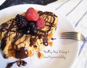 这里就随你发挥,看你是要夹在面包中间,还是直接淋在上面都可以。  - 7. 淋上酱料后,如果有冷冻或新鲜莓果也可以放上去当装饰。