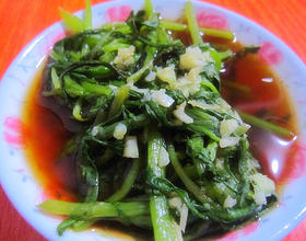 倒在茼蒿上。加入蒜末