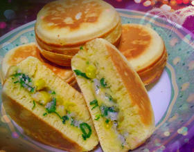 - 5. 吻仔鱼变白熟成后起锅,置盘中倒入特甜玉米粒,搅拌均匀就成了车轮饼的内馅
