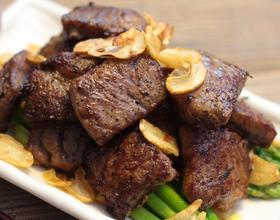 用原来有蒜香的镬,下和牛脂肪煎出油,下和牛粒。